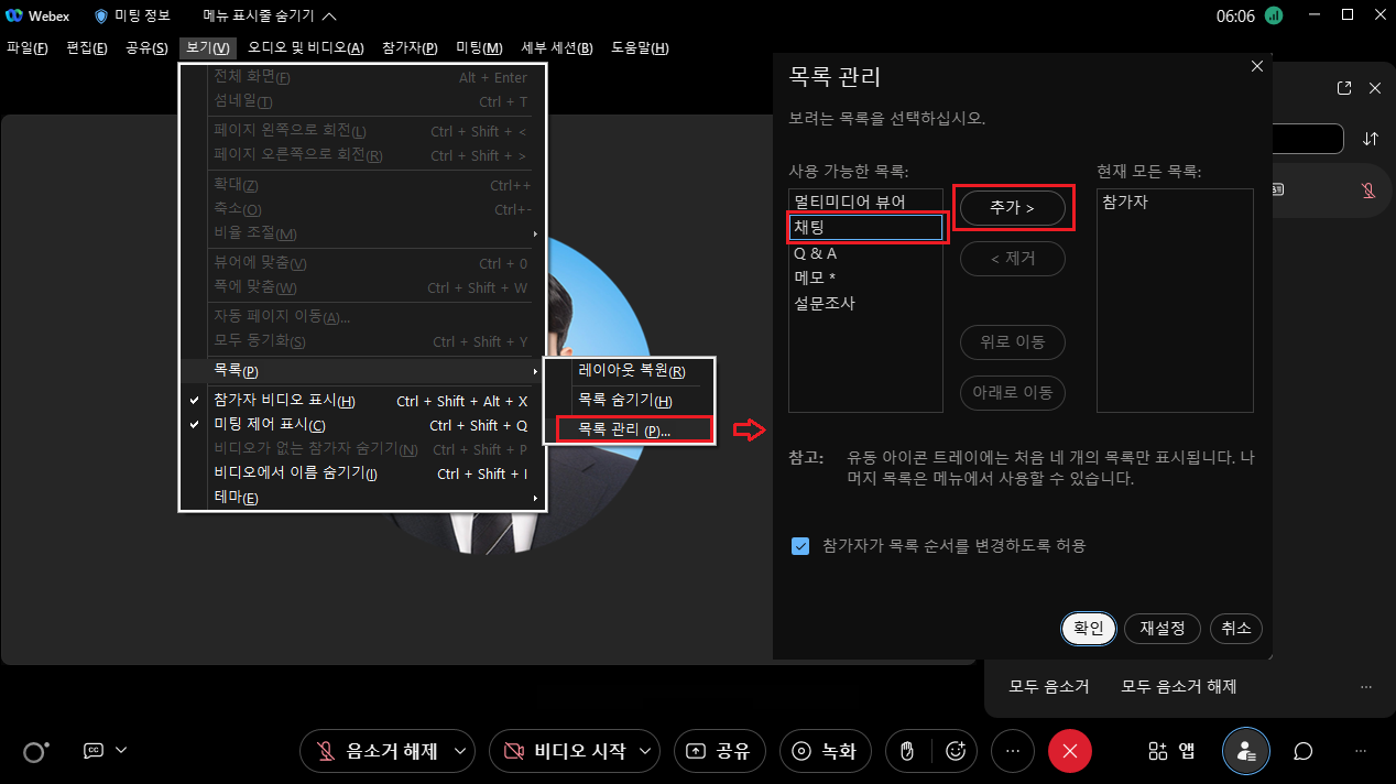 2. 호스트 권한 사용자가 채팅 기능을 활성화