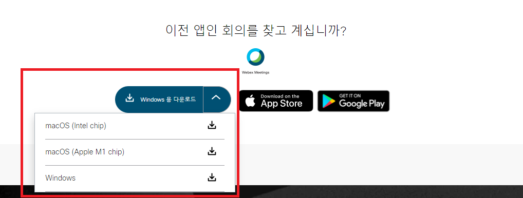 https://www.webex.com/ko/downloads.html 링크를 접속하여 주세요.