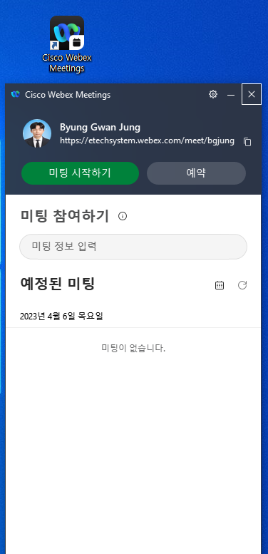 다운로드가 완료되면 Cisco Webex Meetings 앱을 실행시키면 미팅을 할 수 있습니다.