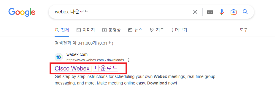 인터넷 검색창에 웹엑스 또는 webex를 검색해주세요.