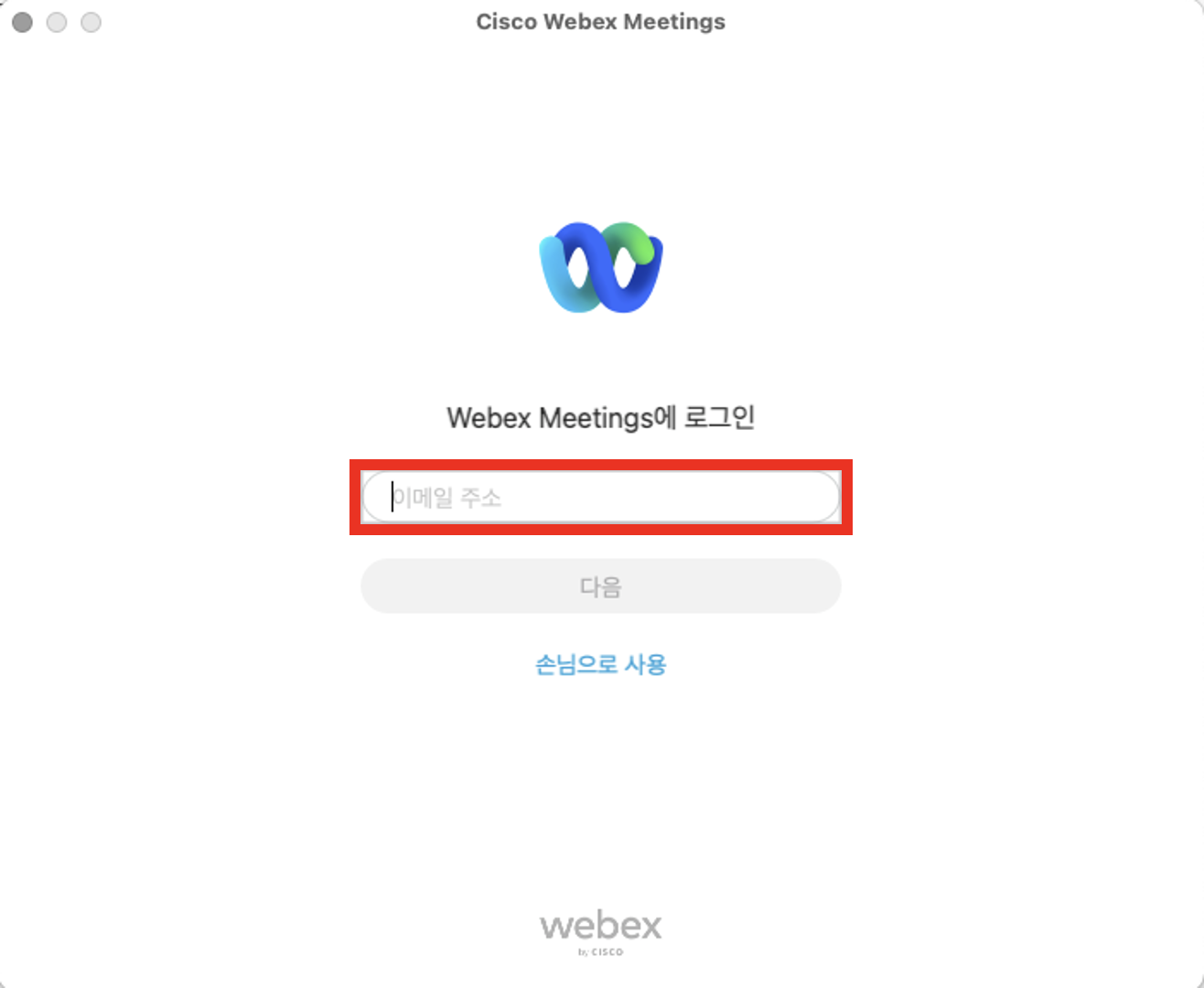 Webex Meetings 설치를 하셨다면 위와 같은 모양의 프로그램이 하나 설치되었을 텐데, 실행시켜주세요.